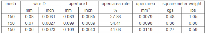 Mesh: 150X150mesh