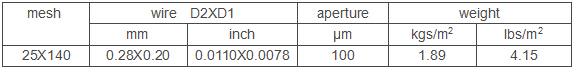 25X140 mesh plain dutch weave stainless steel wire mesh use 0.28X0.20mm diameter wire, by plain dutch weaving, woven 25X140 mesh opening for 100μm solid particles , it can also be used as a liquid, gas filter support material or protective fabrics to use. This wire diameter and mesh with ratio reasonable, therefore weave structure is very strong. After 13 whole weaving process, so that the mesh surface flatness better