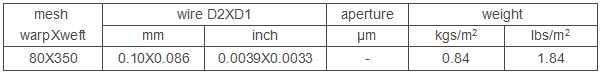 80X350 mesh plain dutch weave stainless steel wire mesh. Using 0.10X0.086mm diameter wire, by plain dutch weaving, woven 80X350 mesh opening, it can be used as liquid or gas filter material.This wire diameter and mesh with ratio reasonable, therefore weave structure is very strong. After 13 whole weaving process, so that the mesh surface flatness better.