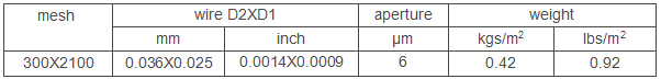 300X2100 mesh twill dutch weave stainless steel wire mesh.Using 0.036X0.025mm diameter wire, by twill dutch weaving, woven 300X2100 mesh opening for 6μm liquid or gas filter.This wire diameter and mesh with ratio reasonable, therefore weave structure is very strong. After 13 whole weaving process, so that the mesh surface flatness better.
