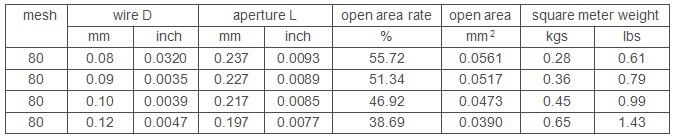 80 mesh plain weave red copper wire mesh including 80 wires and openings of 1 inch Using 0.08-0.12mm diameter wire, by plain weaving, woven 80 mesh opening for 0.19-0.23mm solid particles , it can also be used as a liquid, gas filter support material or protective fabrics to use.This wire diameter and mesh with ratio reasonable, therefore weave structure is very strong. After 13 whole weaving process, so that the mesh surface flatness better.