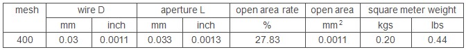400 mesh twill weave phosphor bronze wire mesh including 400 wires and openings of 1 inch Using 0.03mm diameter wire, by twill weaving, woven 400 mesh opening for 0.03mm liquid or gas filter material. This wire diameter and mesh with ratio reasonable, therefore weave structure is very strong. After 13 whole weaving process, so that the mesh surface flatness better.