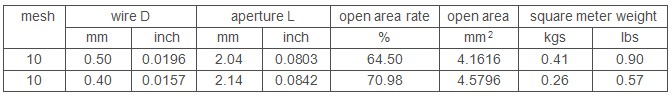 10 mesh aluminum alloy wire mesh technical parameter