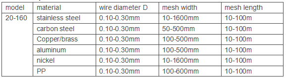 1. 20-160 model: it has 20 openings in the mesh width of 160mm