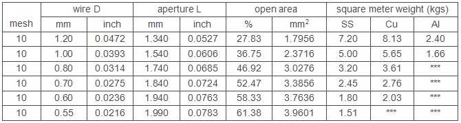 Mesh/Aperture: 10X10mesh