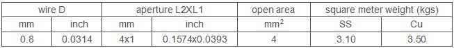 4X1mm slot hole crimped wire mesh Using 0.8mm diameter wire, by slot hole crimped weaving, woven 4X1mm opening for solid particles. This wire diameter and mesh with ratio reasonable,flat surface, strong wear resistance and firm structure.