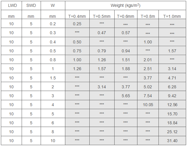 10x5 mm aperture small expanded metal is made from 0.4-1.0mm thickness metal plate by uniformly slit and stretched,forming 10x5 mm small diamond opening in the metal sheet. The mesh is with light-weight,reinforcing properties,uniform mesh connection,processing capability,beautiful surface and practical features.It is widely used for car grilles,filter cartridges,speaker grilles,crafts and decoration,farming fences and other usages.
