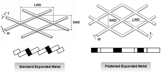 Expanded metal is generally formed in standard(raised) type or flattened type.