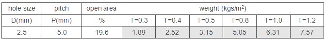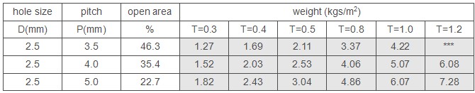 Open area % is the total area of the holes divided by the total area of the sheet and is expressed