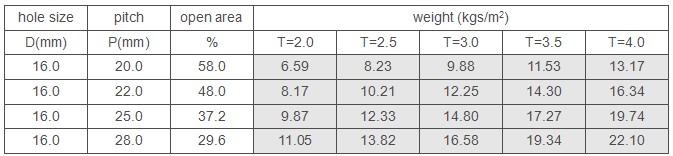 16mm round hole perforated metal mesh is made of metal plate match 16mm aperture punching die, by CNC punch pressing, cutting, slicing, leveling, grease, deburring, and surface treatment processes of roll or sheet mesh. We have 14 complete production lines and advanced numerical equipment, it will be combinations of different material ,pitch and opening rate,to produce more specifications mesh,it is widely used in protection,, decoration, filtering fields.