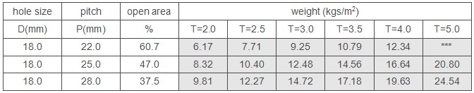 18mm round hole perforated metal mesh is made of metal plate match 18mm aperture punching die, by CNC punch pressing, cutting, slicing, leveling, grease, deburring, and surface treatment processes of roll or sheet mesh. We have 14 complete production lines and advanced numerical equipment, it will be combinations of different material ,pitch and opening rate,to produce more specifications mesh,it is widely used in protection,decoration, filtering fields.