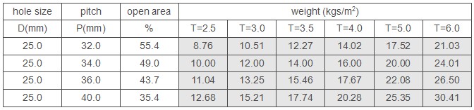 25mm round hole perforated metal mesh is made of metal plate match 25mm aperture punching die, by CNC punch pressing, cutting, slicing, leveling, grease, deburring, and surface treatment processes of roll or sheet mesh. We have 14 complete production lines and advanced numerical equipment, it will be combinations of different material ,pitch and opening rate,to produce more specifications mesh,it is widely used in protection, decoration, filtering fields.