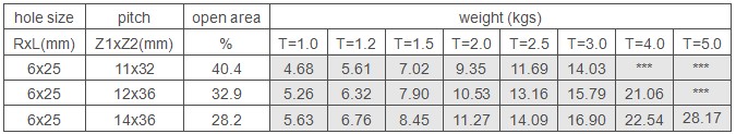 6x25mm slot hole perforated metal mesh is made of metal plate match 6x25mm aperture punching die, by CNC punch pressing, cutting, slicing, leveling, grease, deburring, and surface treatment processes of roll or sheet mesh. We have 14 complete production lines and advanced numerical equipment, it will be combinations of different material, pitch and opening rate,to produce more specifications mesh,it is widely used in air vents, decoration, filtering fields.