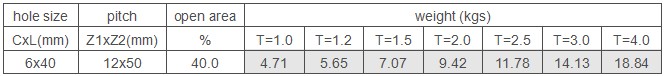 6x40mm slot hole perforated metal mesh is made of metal plate match 6x40mm aperture punching die, by CNC punch pressing, cutting, slicing, leveling, grease, deburring, and surface treatment processes of roll or sheet mesh. We have 14 complete production lines and advanced numerical equipment, it will be combinations of different material, pitch and opening rate,to produce more specifications mesh,it is widely used in audio, decoration, filtering fields.