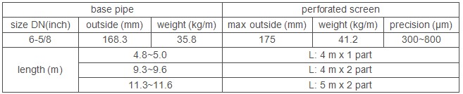 6-5/8” perforated sand control screen is made of 6-5/8” base pipe, the max 175mm outside diameter of stainless steel perforated screen and support rings. With precision controllable aperture and excellent corrosion resistance, the good ability of the overall strength and resistance to deformation, high density and low flow resistance, it can be used in vertical wells, deviated well, horizontal wells, cased hole and open hole wells, and kinds of oil, gas, water wells and sand control industry