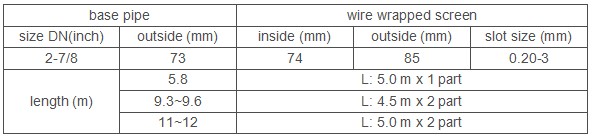 2-7/8” wire wrapped sand control screen is made of 2-7/8” base pipe, 85mm outside diameter of stainless steel wire wrapped screen and support bars. With high filter precision, V-type cross-sectional structure avoid clogging and ensure smooth flow, sturdy structure,high porosity, accurate gaps size. It can be used in vertical wells, deviated well, horizontal wells for gravel packing and sand control.