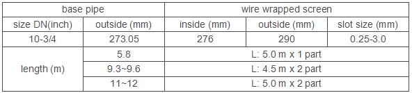 10-3/4” wire wrapped sand control screen technical parameter