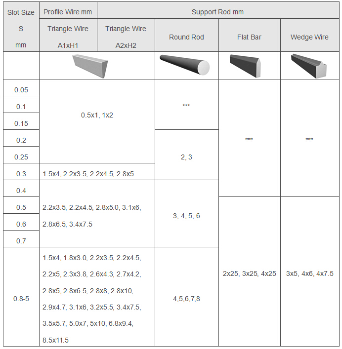 Support Rod: Triangle wire is common type. It can also be round rod, flat bar, wedge wire.