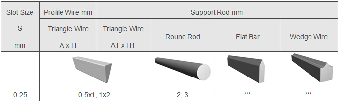 For flat wedge wire screen, profile wire type is triangle wire.Support rod includes triangle wire, round rod.