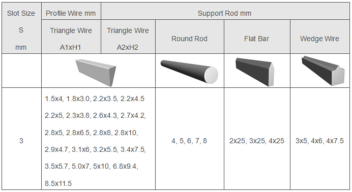 Support Rod: Triangle wire is common type. It can also be round rod, flat bar, wedge wire.