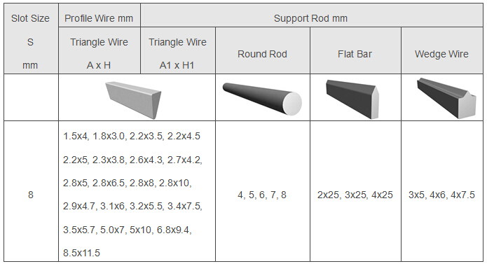 Support Rod: Triangle wire is common type. It can also be round rod, flat bar, wedge wire.