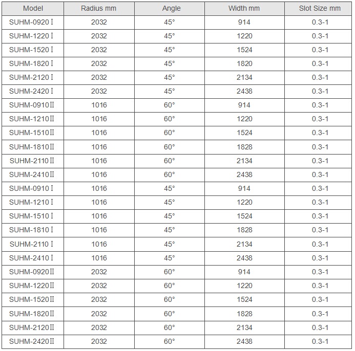 Generally the slot size of sieve bend screen is 0.3-1mm for mining screen.