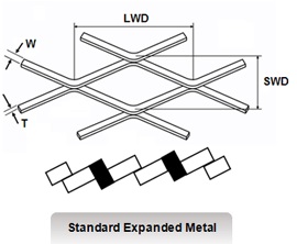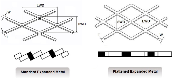 Expanded metal is generally formed in standard(raised) type or flattened type.